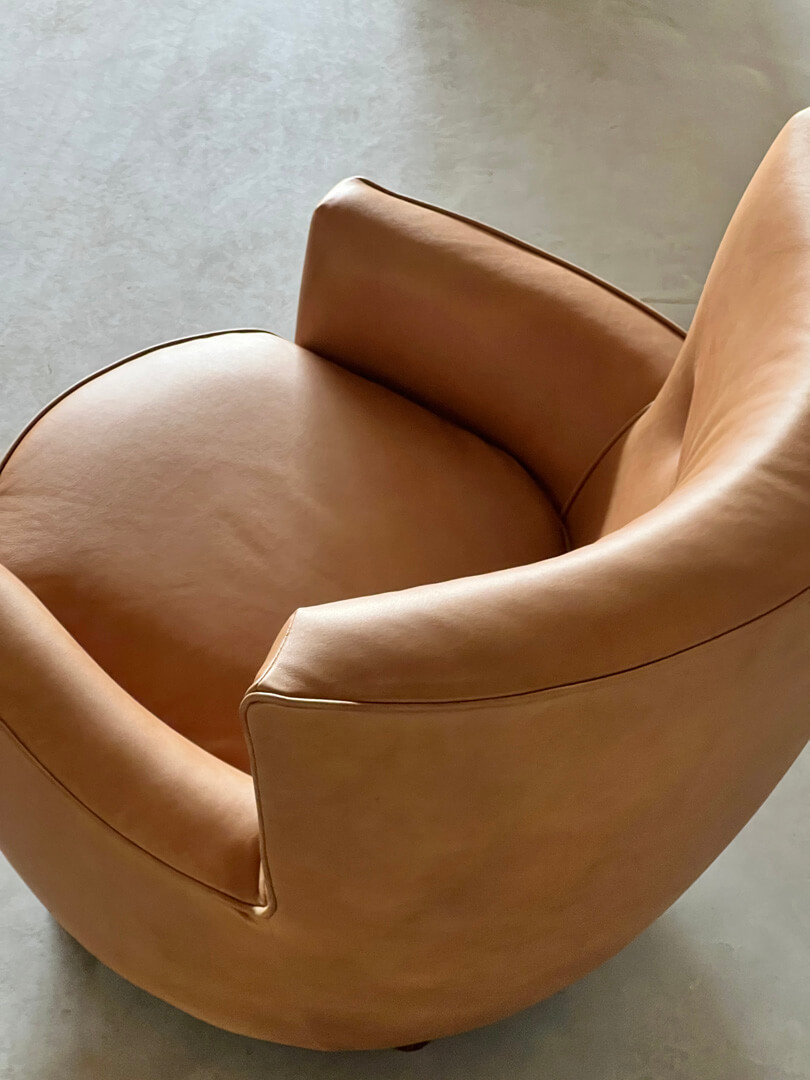 Poltrona in pelle di dimensioni contenute e grande comodità.